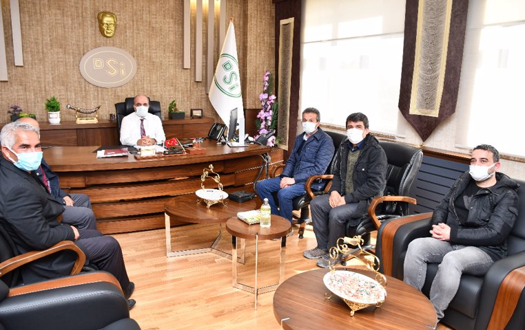 Malatya Hekimhan İğdir Köyü Muhtarı Sırrı DEMİRHAN, Başkavak Köyü Muhtarı Kamil KUTİLOĞLU, Haydaroğlu Köyü Muhtarı Battal ERCAN ve Bağlıkaya Köyü Muhtarı Mercan ÇELİK, Bölge Müdürümüz Mahmut Dündar’ı ziyaret ettiler. Ziyarette; Planlama çalışmaları devam eden İğdır Göleti ve Sulaması ile dere ıslahı talepleri görüşüldü. Bölge Müdürümüz, ziyaretlerinden dolayı muhtarlarımıza teşekkür ederek, memnuniyetini ifade etti.