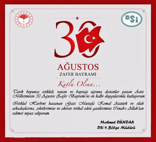 Tarih boyunca istiklali, vatanı ve bayrağı uğruna destanlar yazan Aziz Milletimizin 30 Ağustos Zafer Bayramı'nı en kalbi duygularımla kutluyorum.